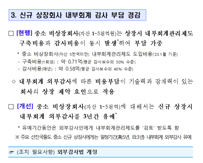 자산 5천억 미만 신규 상장사에 대한 내부회계관리제도 감사 3년 유예?
